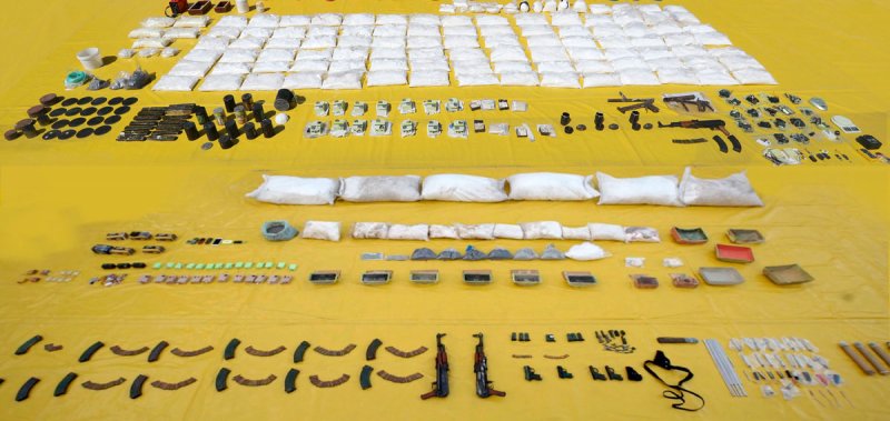 ولفتت إلى ضبط «حوالي 42 كيلوجراما من مادتي C4 وTNT شديدة الانفجار، وأكثر من 757 كيلوجراما من مادة نترات اليوريا، وأسلحة كلاشينكوف ومسدسات وطلقات نارية وصواعق وعدد من القنابل المغناطيسية واليدوية، وعدد من العبوات المضادة للأفراد والمركبات المصفحة وخارقة للدروع».