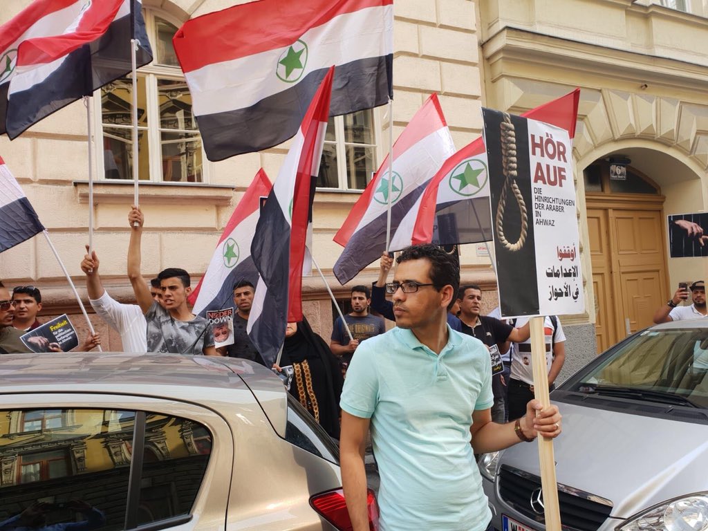 مظاهرات للجالية الأحوازية في النمسا قرب مقر إقامة حسن روحاني احتجاجا على مايتعرض له الشعب الأحوازي من سياسة المحتل الصفوي.