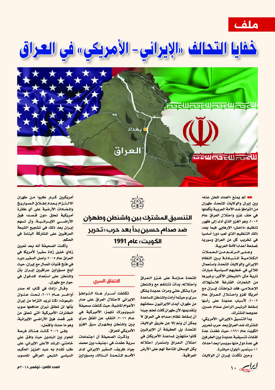تكشفت أسرار هذا التواطؤ الإيراني لاحتلال العراق على مدار الأعوام الماضية، حيث كشفت صحيفة «نيويورك تايمز» الأميركية في عام 2016، النقاب عن اتفاق سري بين واشنطن وطهران سبق الغزو الأمريكي للعراق.