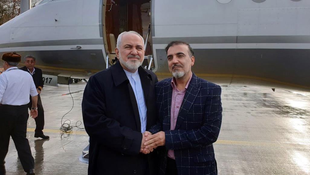 ظريف مع الباحث الإيراني مسعود سليماني بأحد مطارات سويسرا (الأوروبية)