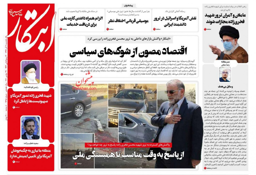 "اطلاعات" شبه الرسمية نقلاً عن خامنئي: لإنزال العقوبات الشديدة على مرتكبي جريمة اغتيال فخري زاده ومشغليهم