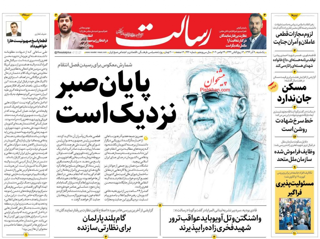 أبرز عناوين الصحف الإيرانية الصادرة صباح الأحد 29/11/2020