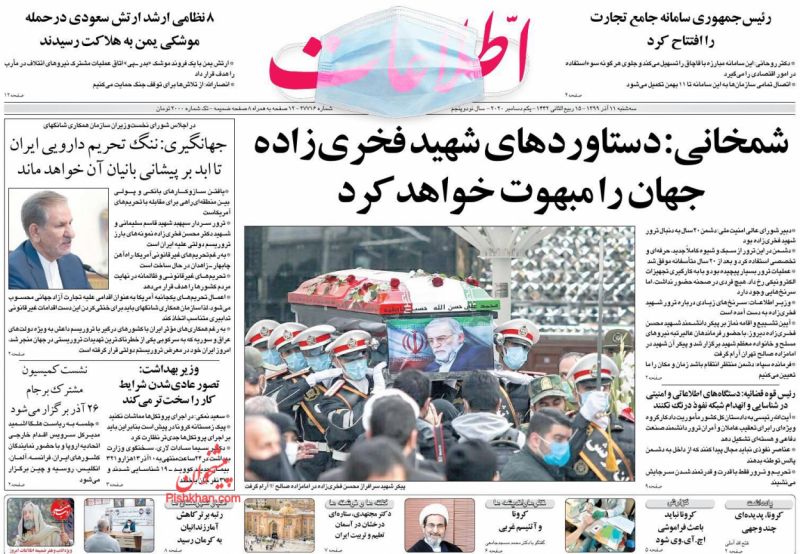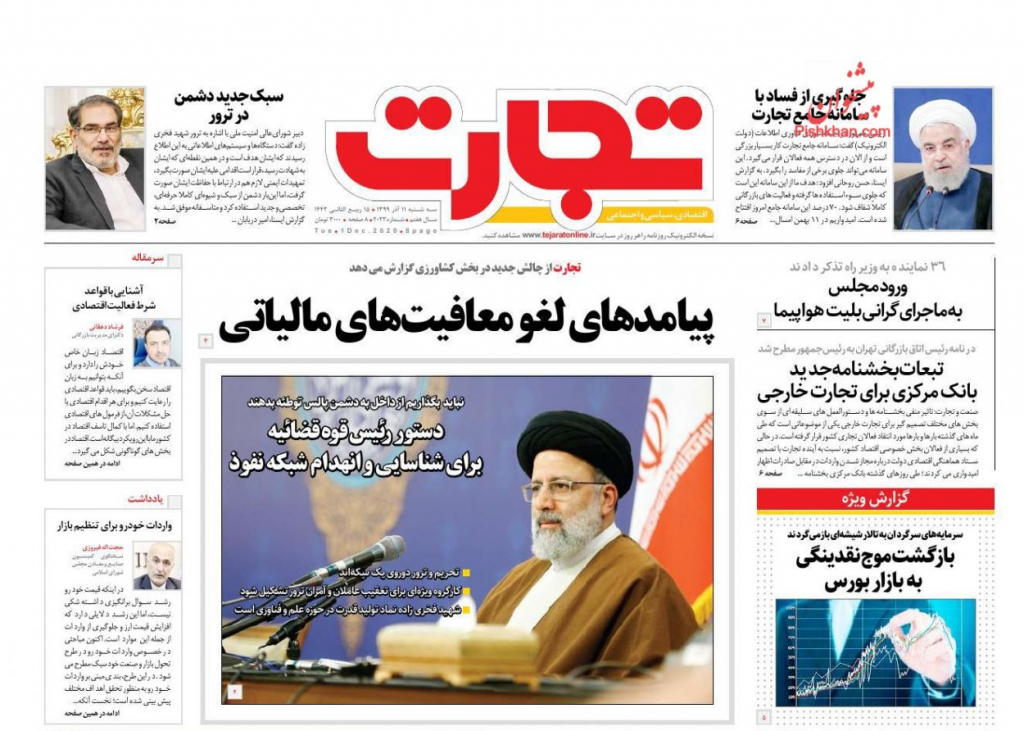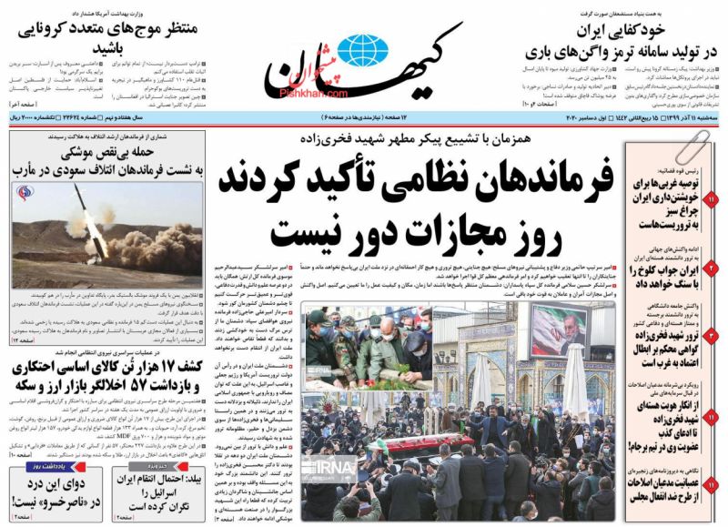 أبرز عناوين الصحف الإيرانية الصادرة صباح الثلاثاء 01/12/2020
