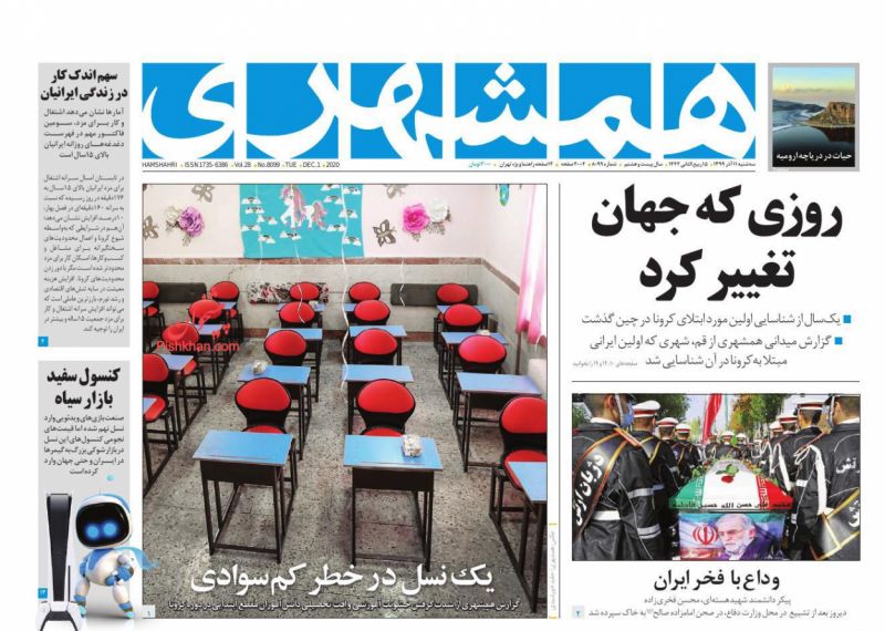 "همشهري" الصادرة عن بلدية طهران بموضوع الذكرى السنوية لانتشار وباء كورونا: اليوم الذي تغير فيه العالم