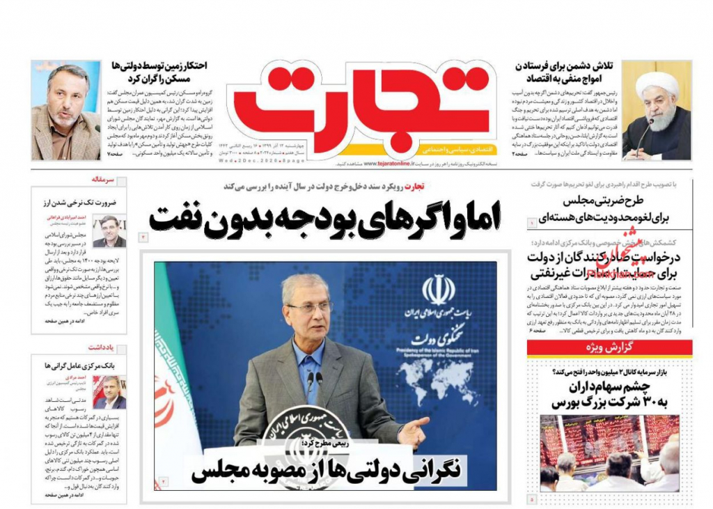 أبرز عناوين الصحف الإيرانية الصادرة صباح الأربعاء 02/12/2020