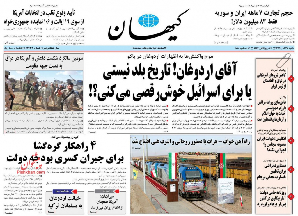 "كيهان" الأصولية: سيد إردوغان!.. ألا تعرف التاريخ أم أنك ترقص لإسرائيل؟!