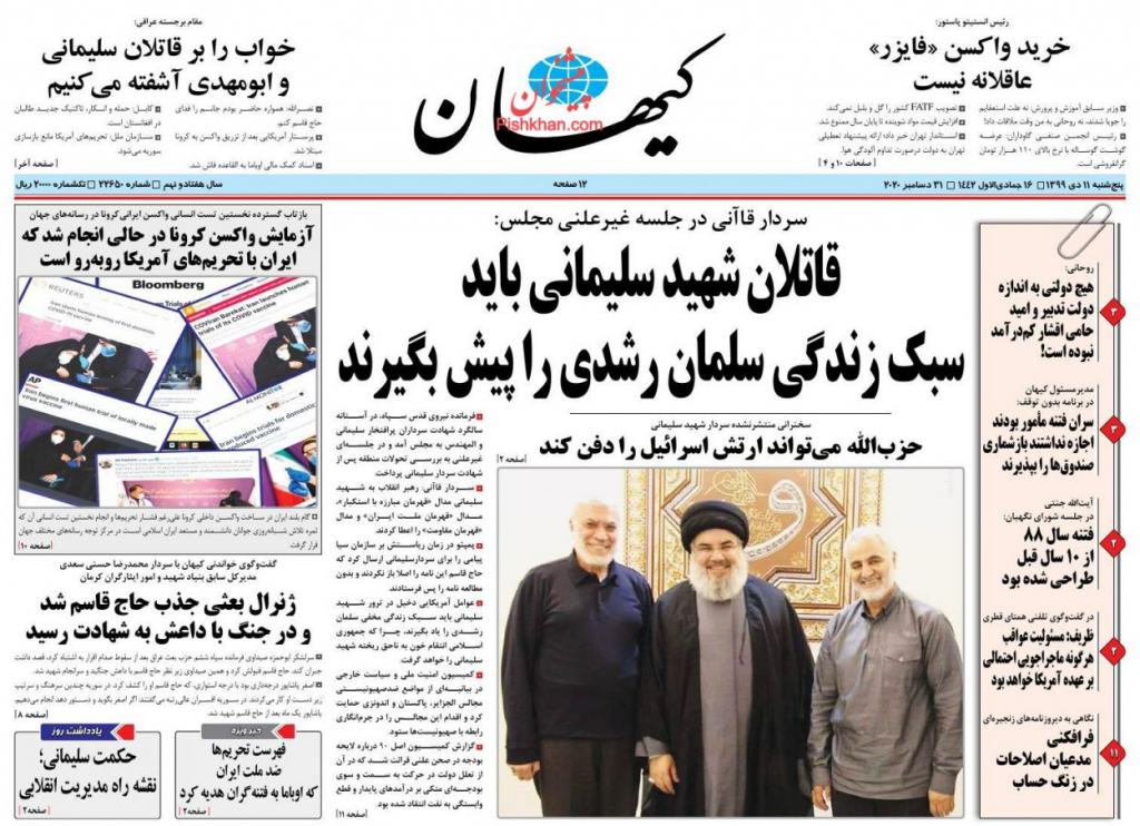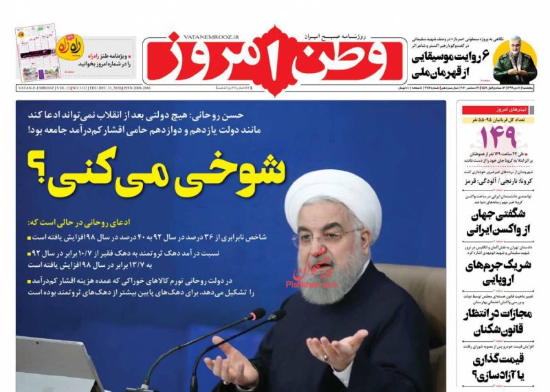 أبرز عناوين الصحف الإيرانية الصادرة صباح الخميس 31/12/2020