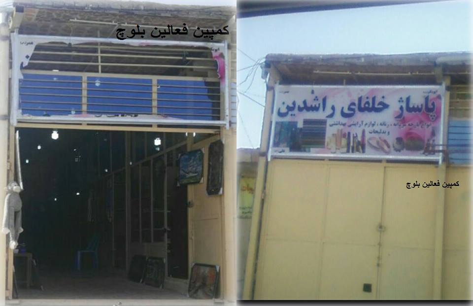 صورة وتعليق|تمزيق لافتة سوق الخلفاء الراشدين بمدينة دلجان البلوشية بواسطة أعداء الصحابة