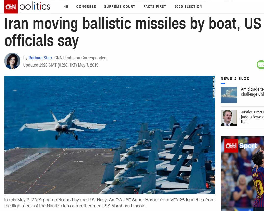 نقلت شبكة "سي إن إن CNN" عن مصادر في الاستخبارات الأميركية أن إيران نقلت عدة صواريخ عبر القوارب في الخليج العربي وذلك بعد تهديداتها بإغلاق مضيق هرمز.