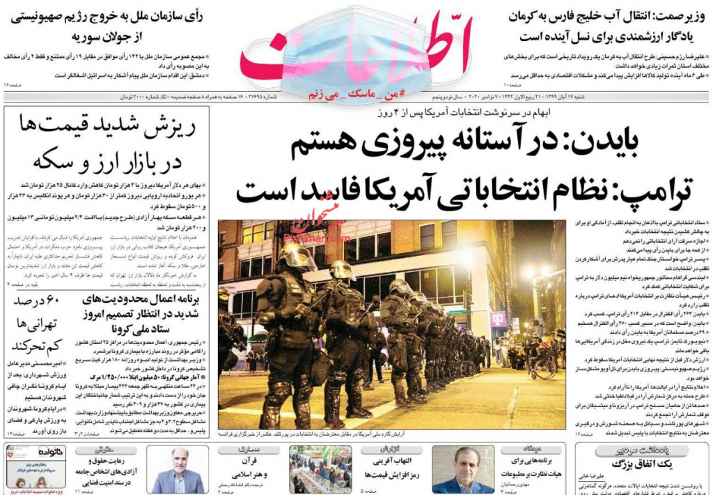 "اطلاعات" شبه الرسمية: بايدن: أنا على وشك الإنتصار، ترامب: النظام الانتخابي في أميركا فاسد