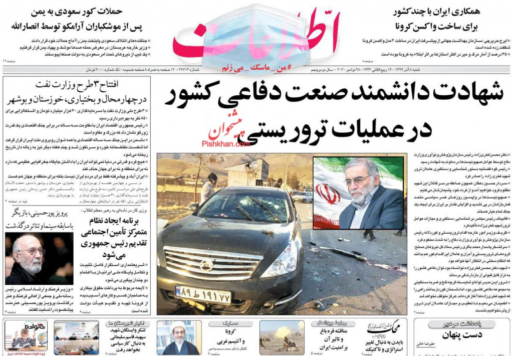 "اطلاعات" شبه الحكومية: اغتيال عالم صناعة الدفاع الإيراني في عملية إرهابية