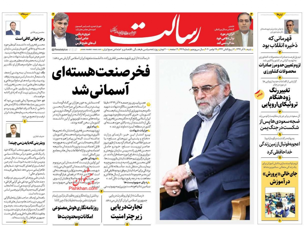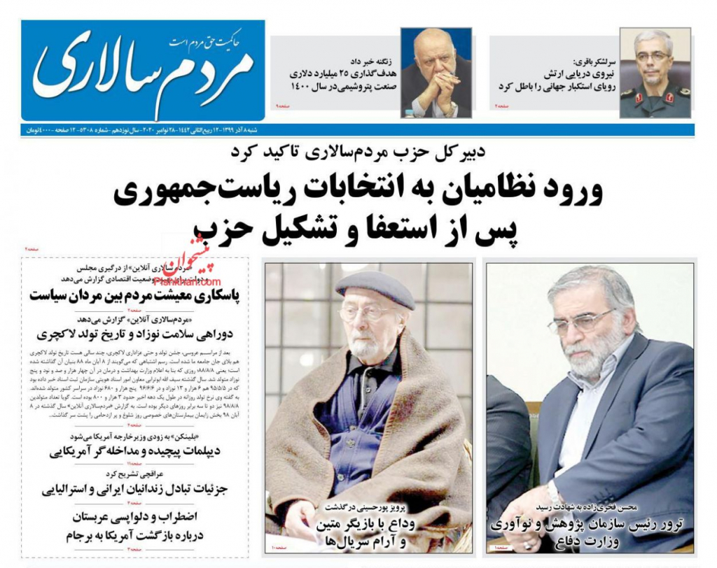 "مردم سالاري" الإصلاحية: اغتيال رئيس هيئة البحث والابتكار بوزارة الدفاع