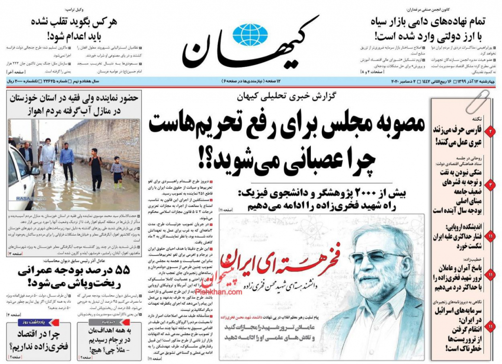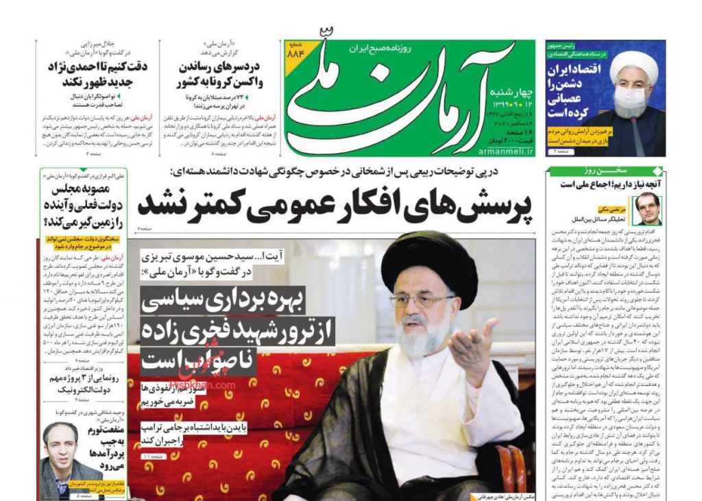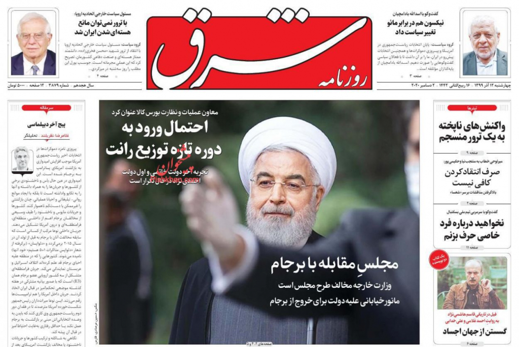 أبرز عناوين الصحف الإيرانية الصادرة صباح الأربعاء 02/12/2020
