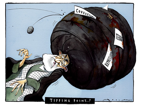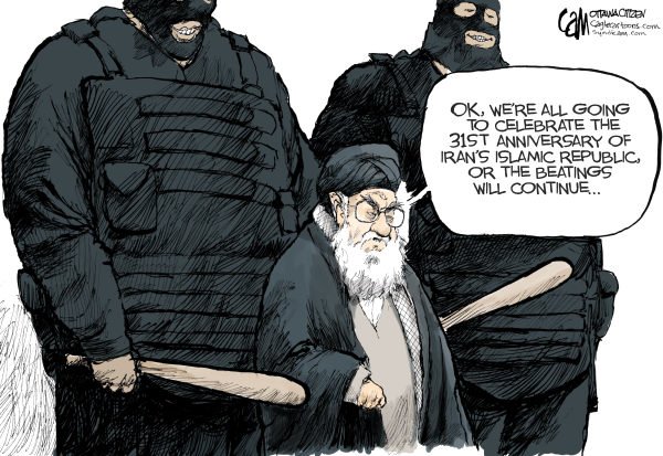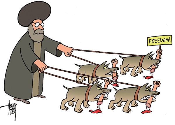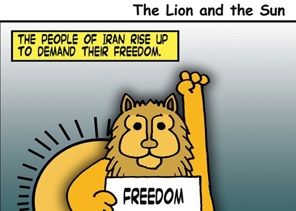 وقد جذبت هذه الاحتجاجات انتباه الكثير من رسامي الكاريكاتير حول العالم الذين حاولوا التعبير عن الانتفاضة الإيرانية من خلال لوحاتهم الآتية: