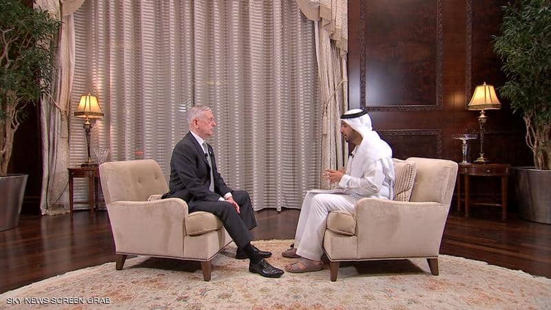 ودعا ماتيس، الذي يزور العاصمة الإماراتية أبوظبي، في لقاء خاص مع "سكاي نيوز عربية"، دول المنطقة إلى تشكيل جبهة موحدة لمواجهة إيران، ودفعها لتغيير "سلوكها التدميري".