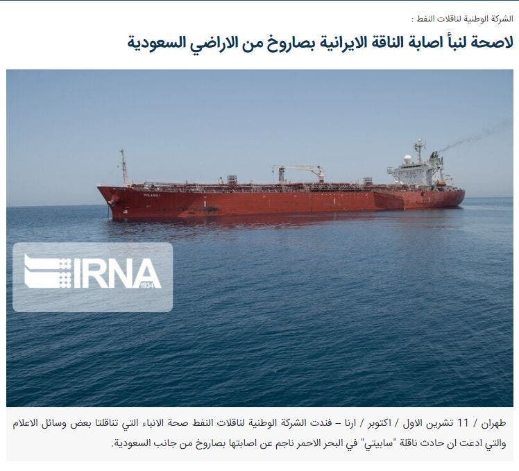 تعرّضت سفينة تجارية إيرانية لهجوم سابق، كما تقول السلطات الايرانية، أثناء إبحارها في البحر الأحمر قبالة سواحل السعودية، ومنذ ذلك الحين كانت هناك محاولة لمعرفة من هاجمها وكيف فعل ذلك. أشارت التقارير إلى أنها تعرّضت للهجوم بالصواريخ، لكن صورها بعد الضربة تطرح المزيد من الاحتمالات. في وقت مبكر من صباح يوم الجمعة الموافق 11 أكتوبر 2019 ذكرت ناقلة إيرانية اسمها "سبتي" قادمة من إيران أنها أصيبت بصاروخين أطلقا عليها في وسط البحر الأحمر على بعد 100 ميل من جدة السعودية. وفي الأشهر الأخيرة، تعرض عدد من السفن الإيرانية للهجوم.