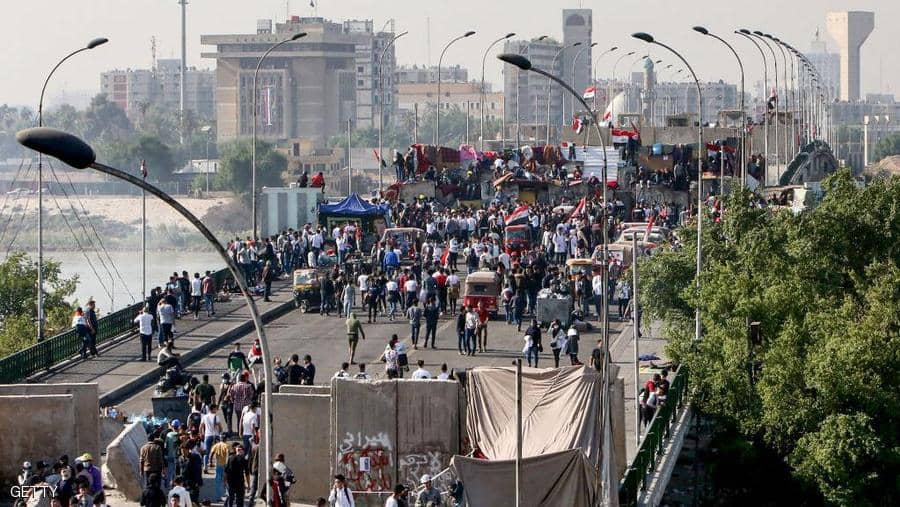 ويفرض المحتجون وجودهم في أجزاء من 3 جسور رئيسية في بغداد، هي الجمهورية والأحرار والسنك، مع استمرار المواجهات مع قوات الأمن.