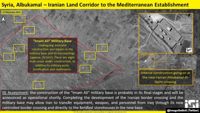 ويؤكد التقرير أن فحصا دقيقا للمنطقة يظهر أن القاعدة الجديدة الواقعة قرب مدينة ألبوكمال في سوريا، تمتد على مساحة تقدر بنحو 20 كيلومترا مربعا وتحتوي على 30 كيلومترا من الطرق الداخلية.