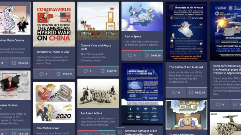 وركزت المجموعة على نشر صور كرتونية أو فيديوهات تدعم البروباغاندا التي تطلقها الحكومة الإيرانية، وتنشرها عبر الحسابات كأنها مستمدة من مصادر رسمية أو صحفية.