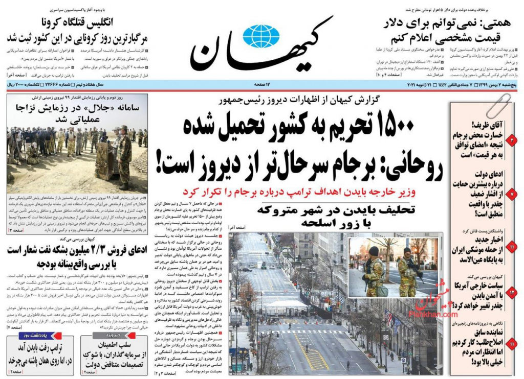 أبرز عناوين الصحف الإيرانية الصادرة صباح الخميس 21/1/2021