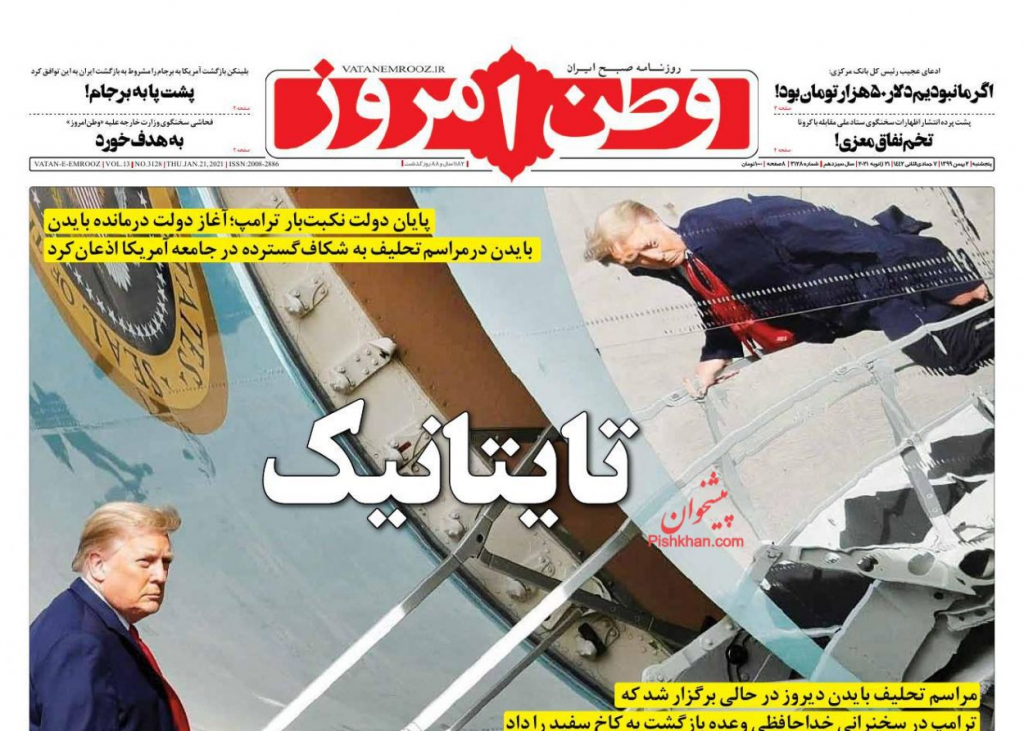 "وطن امروز" الأصولية عن خروج ترامب من البيت الأبيض وتنصيب بايدن بإجراءات أمنية شديدة: التايتانيك