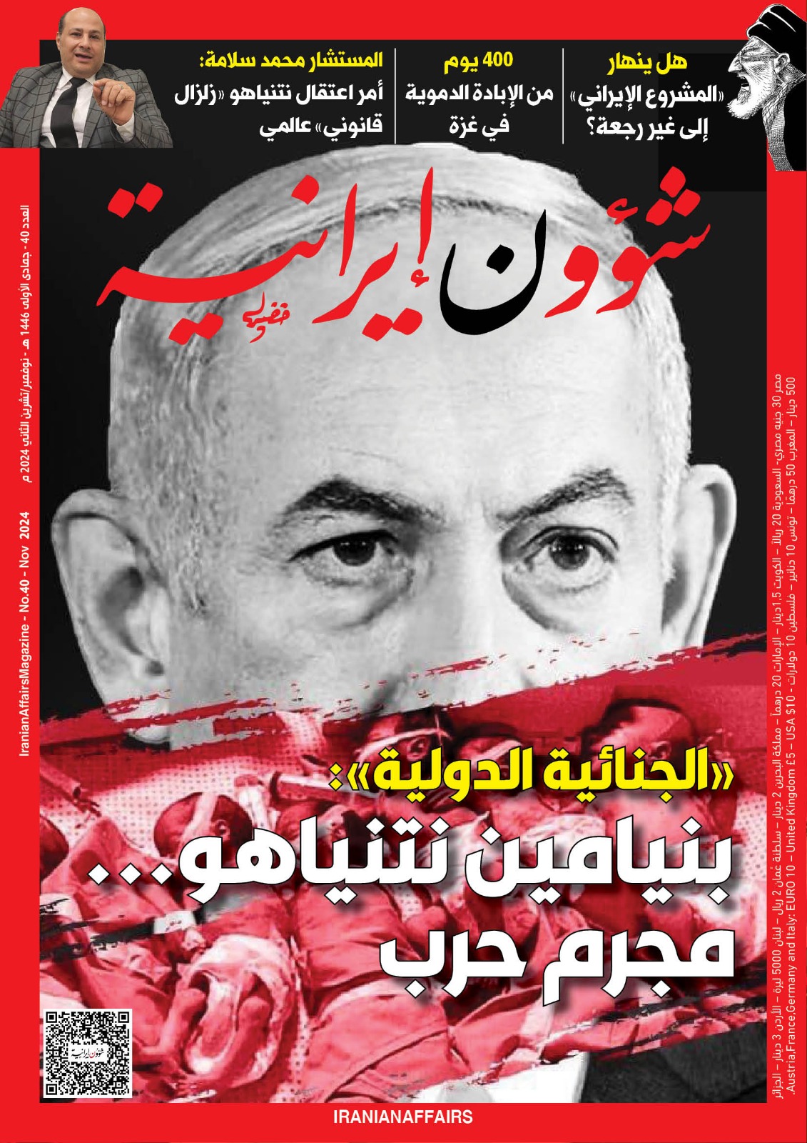 صدر العدد الأربعون من مجلة «شؤون إيرانية»، عدد شهر نوفمبر/تشرين الثاني 2024، التي تُعنى بالوقوف في وجه أطماع ملالي طهران في المنطقة العربية، من أجل قطع الطريق على المشروع الطائفي التوسعي لـ «ذوي العمائم السوداء» في الشرق الأوسط، وهي تصدر عن مركز الخليج للدراسات الإيرانية.