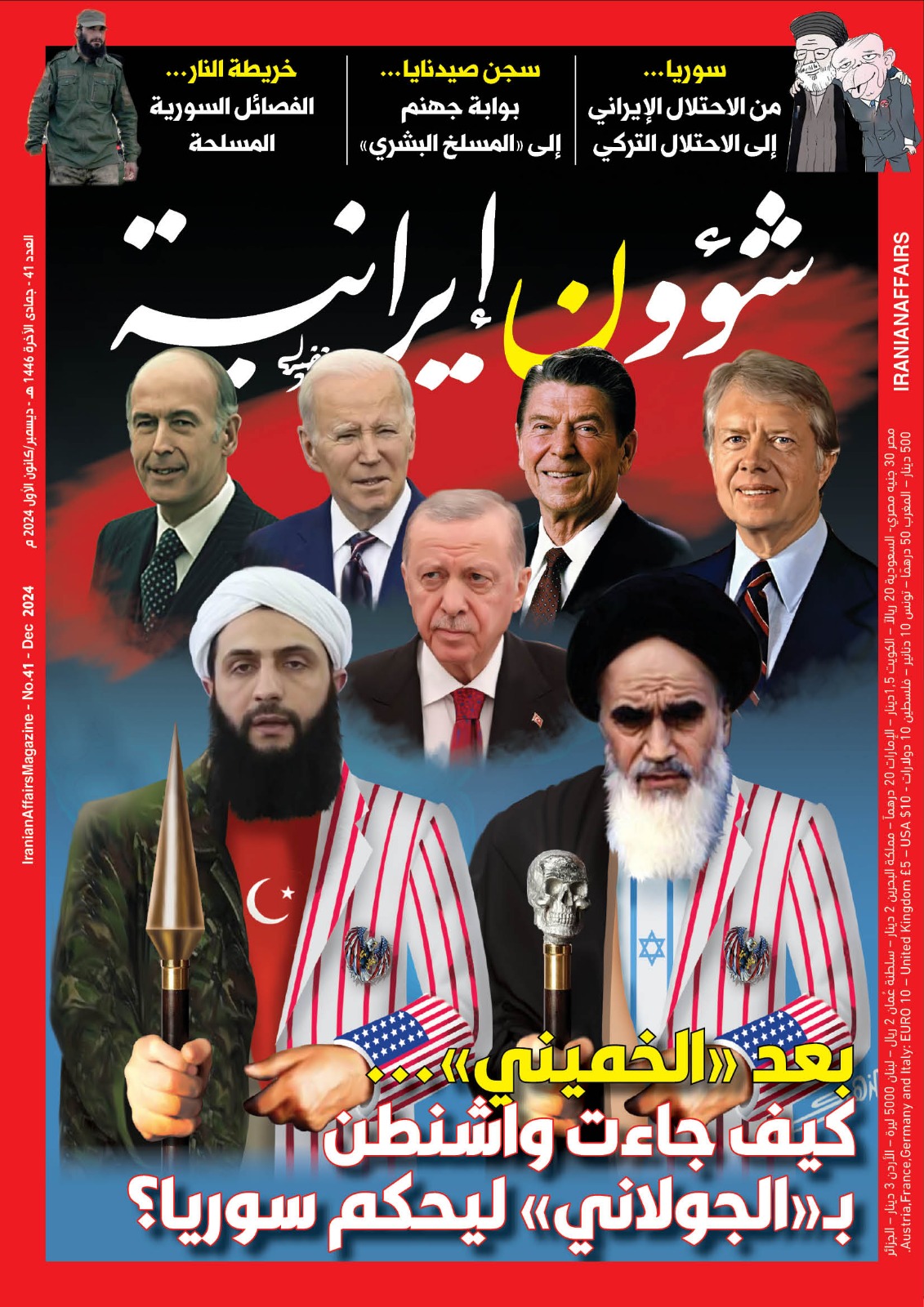 صدر العدد الحادي والأربعون من مجلة «شؤون إيرانية»، عدد شهر ديسمبر/ كانون الأول 2024، التي تُعنى بالوقوف في وجه أطماع ملالي طهران في المنطقة العربية، من أجل قطع الطريق على المشروع الطائفي التوسعي لـ «ذوي العمائم السوداء» في الشرق الأوسط، وهي تصدر عن مركز الخليج للدراسات الإيرانية.