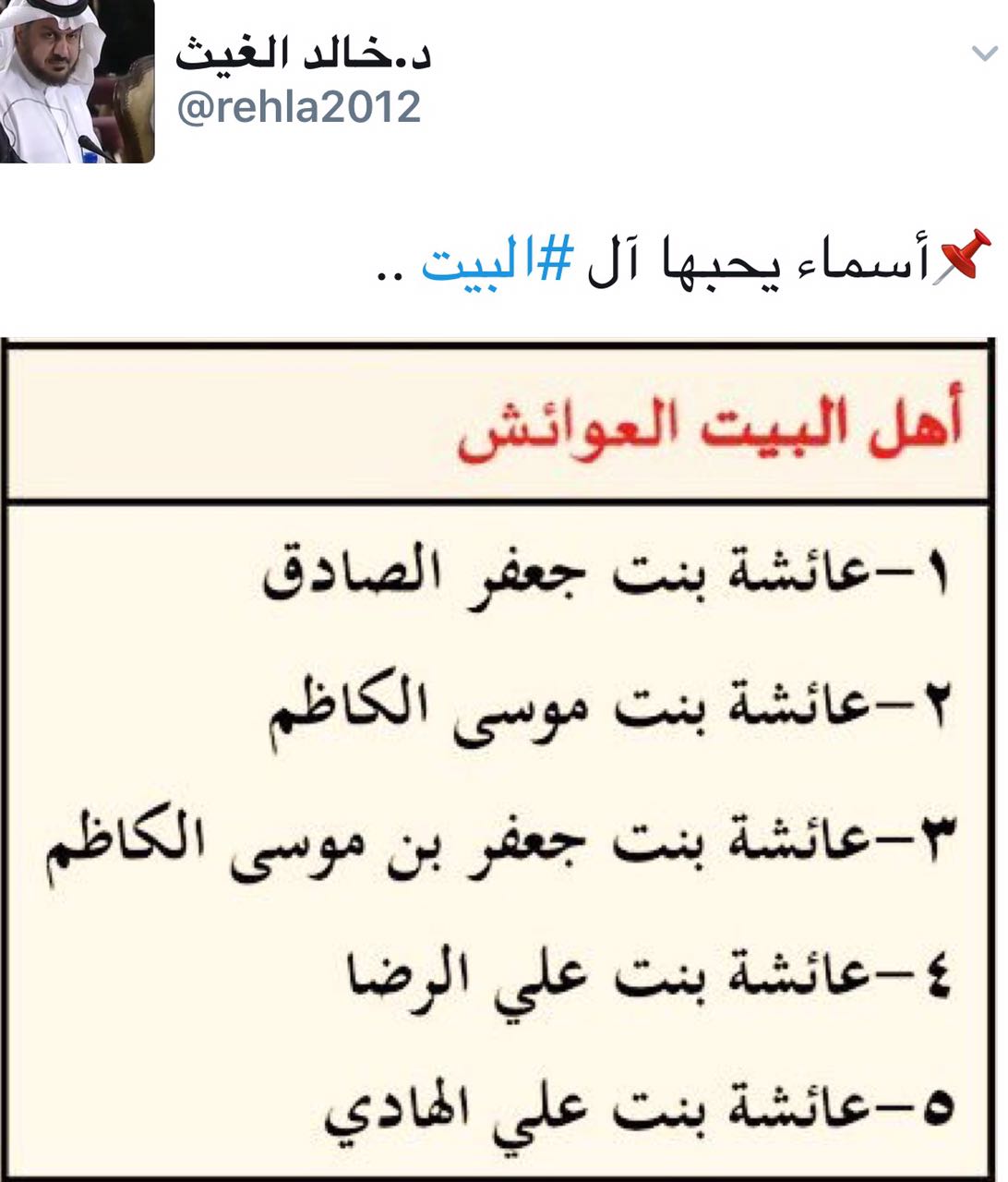 أسماء يحبها «آل البيت»